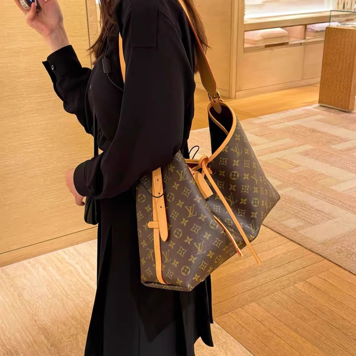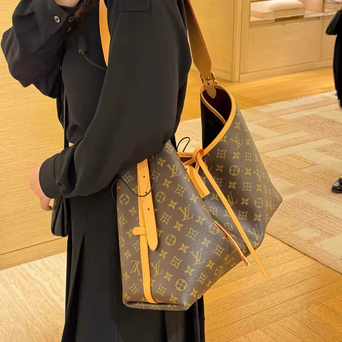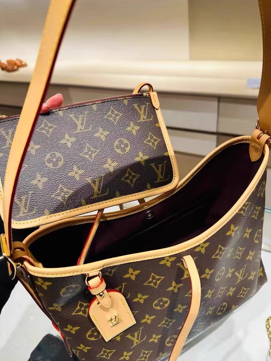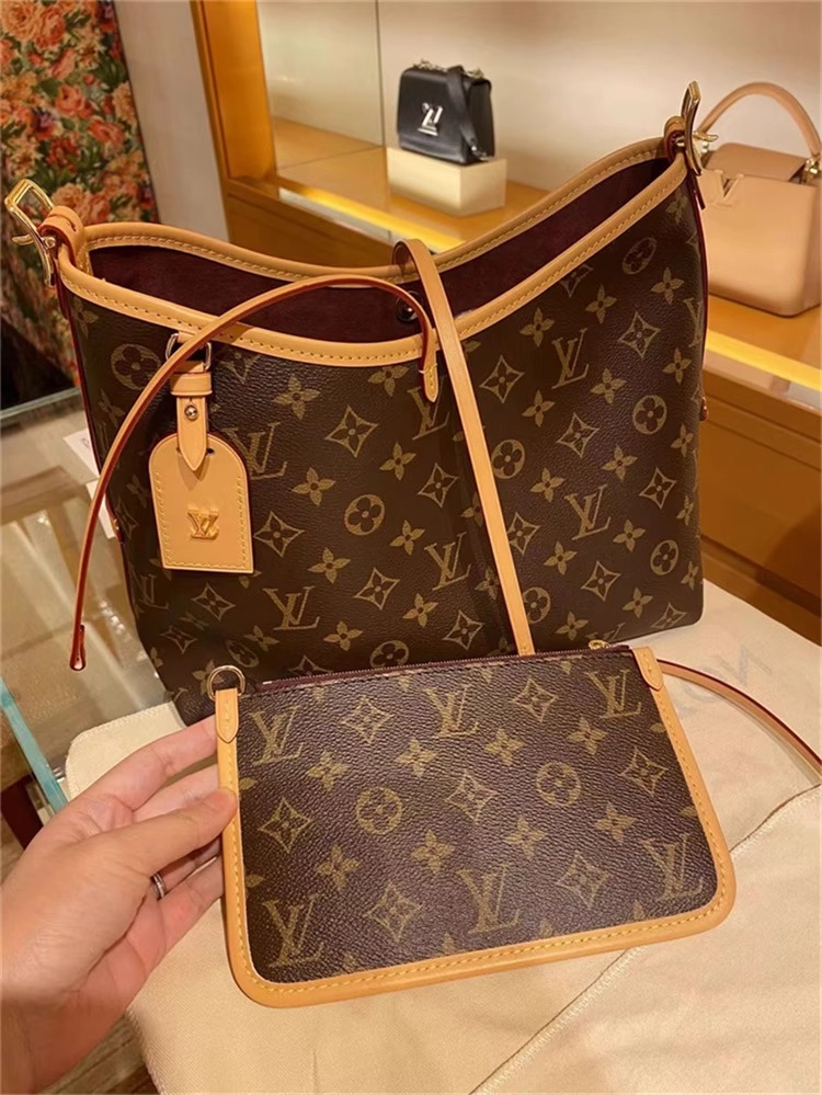 美しさとボディフレンドリーなデザインが融合した「キャリーオール NM PM」。モノグラム・キャンバスにナチュラルレザーのトリミングを施した、普段使いにぴったりのシティバッグです。内側には2つの大ぶりのポケットをあしらい、大容量で機能的なデザインに仕上げました。同じくモノグラム・キャンバスを使用した取外し可能なファスナー付きポーチは、レザーストラップでバッグに取付けられています。