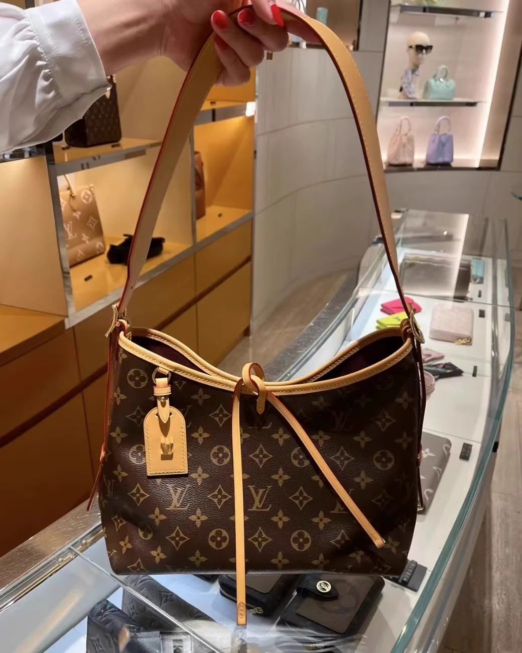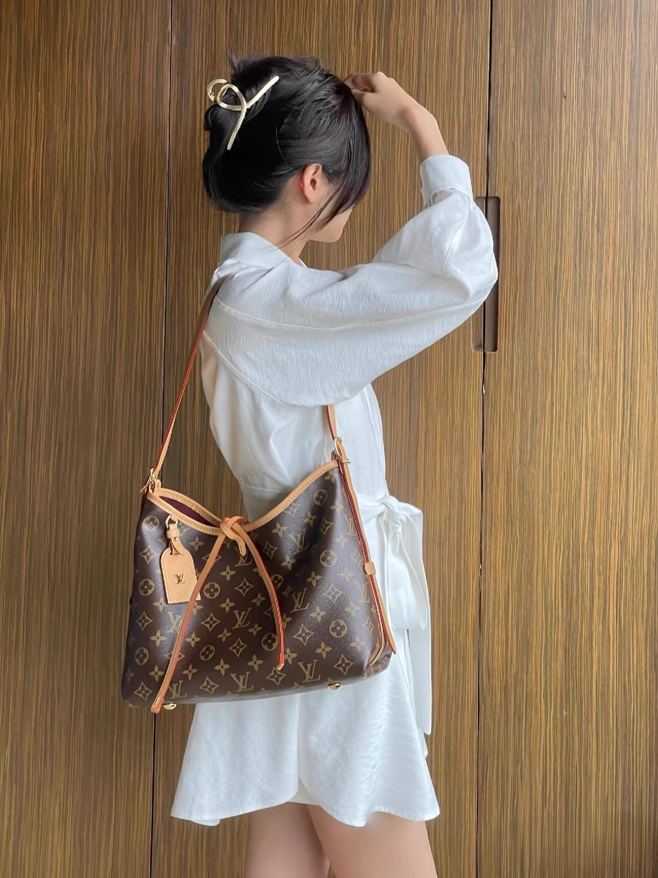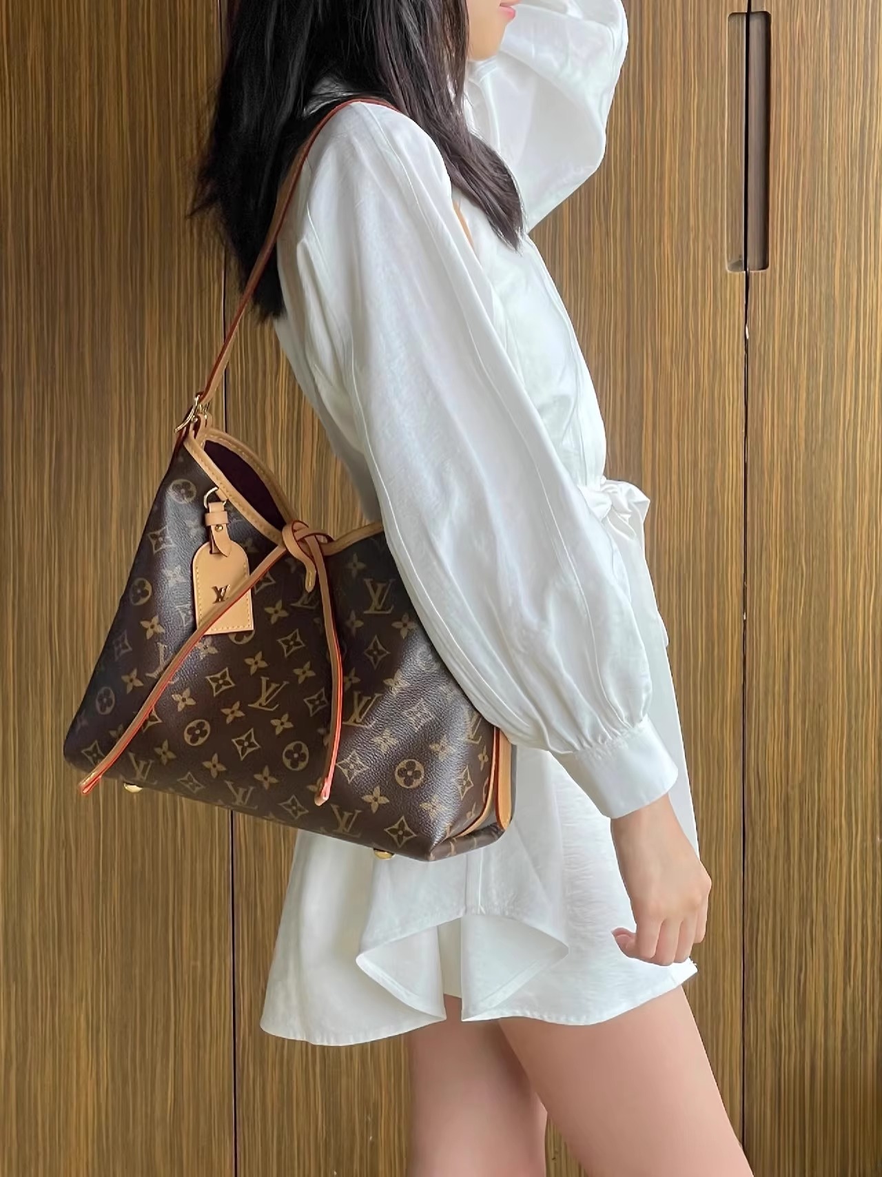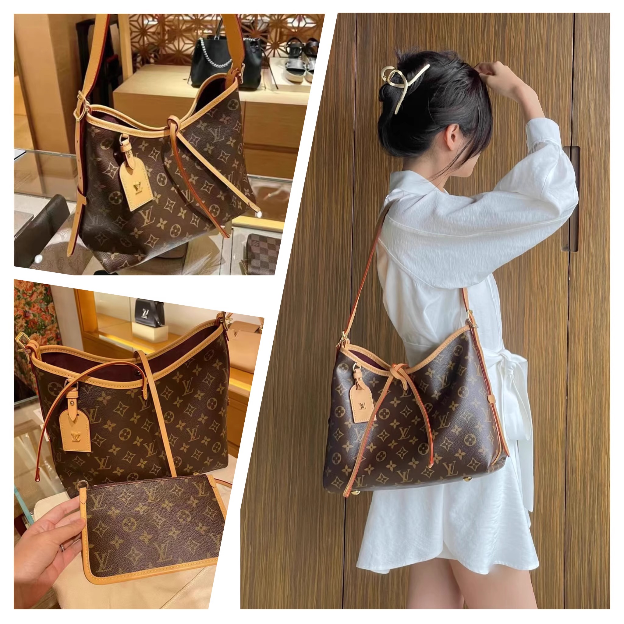 美しさとボディフレンドリーなデザインが融合した「キャリーオール NM PM」。モノグラム・キャンバスにナチュラルレザーのトリミングを施した、普段使いにぴったりのシティバッグです。内側には2つの大ぶりのポケットをあしらい、大容量で機能的なデザインに仕上げました。同じくモノグラム・キャンバスを使用した取外し可能なファスナー付きポーチは、レザーストラップでバッグに取付けられています。