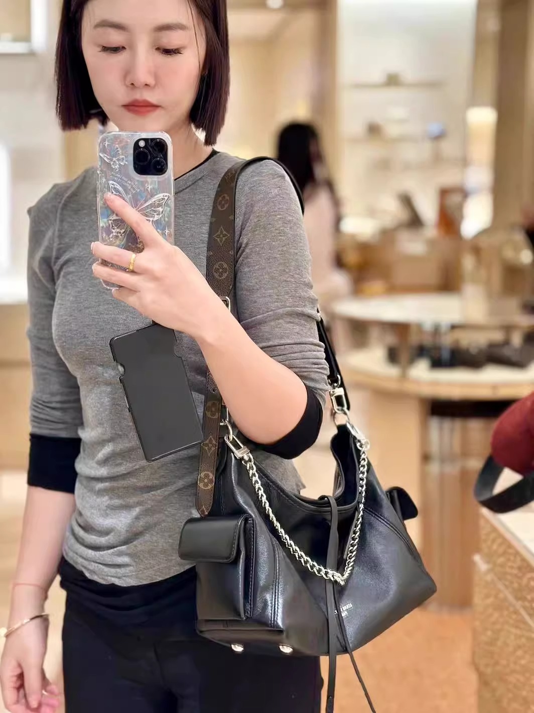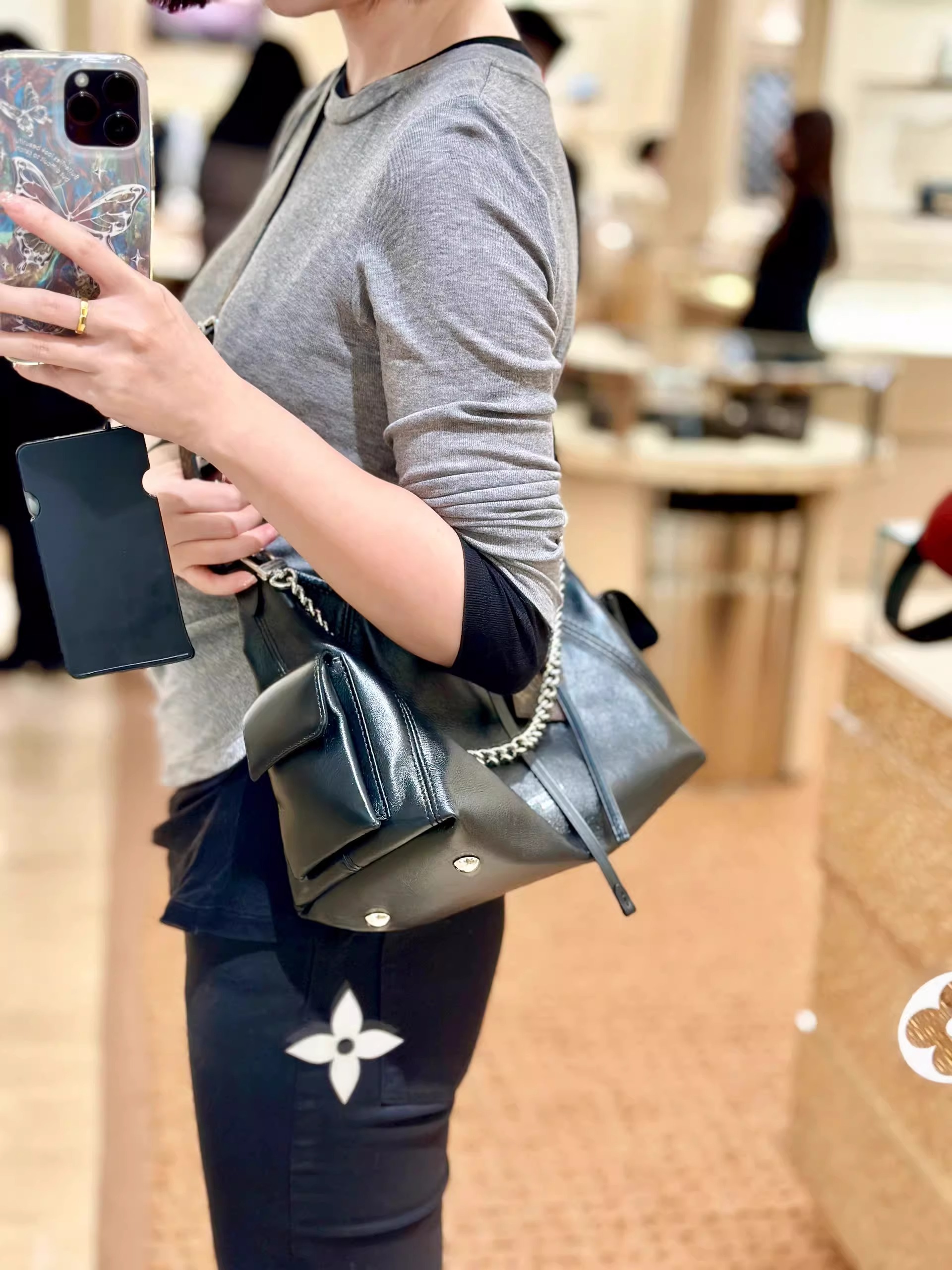 - ストラップの頂点からバッグ上部までの長さ(最長):48.0 cm